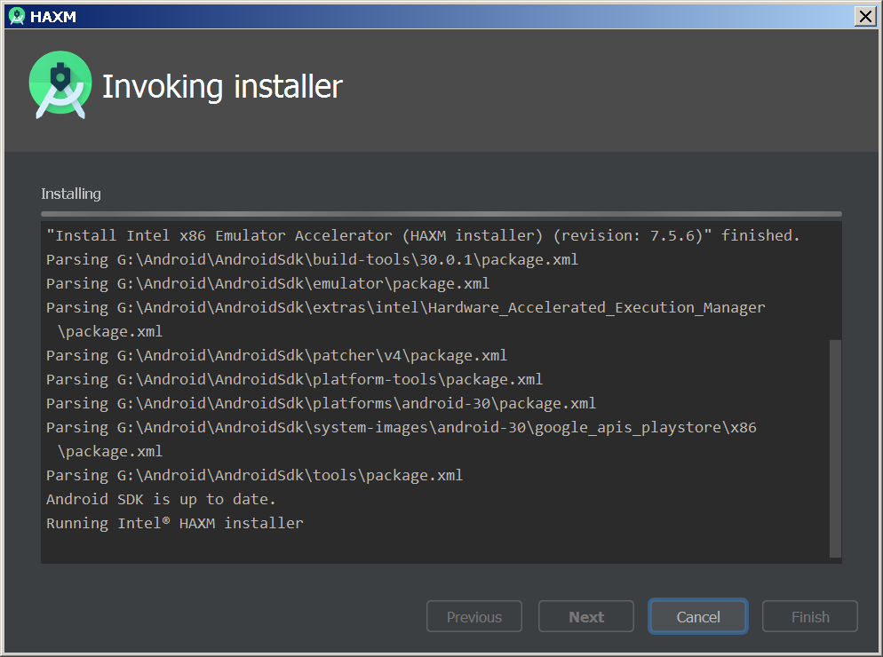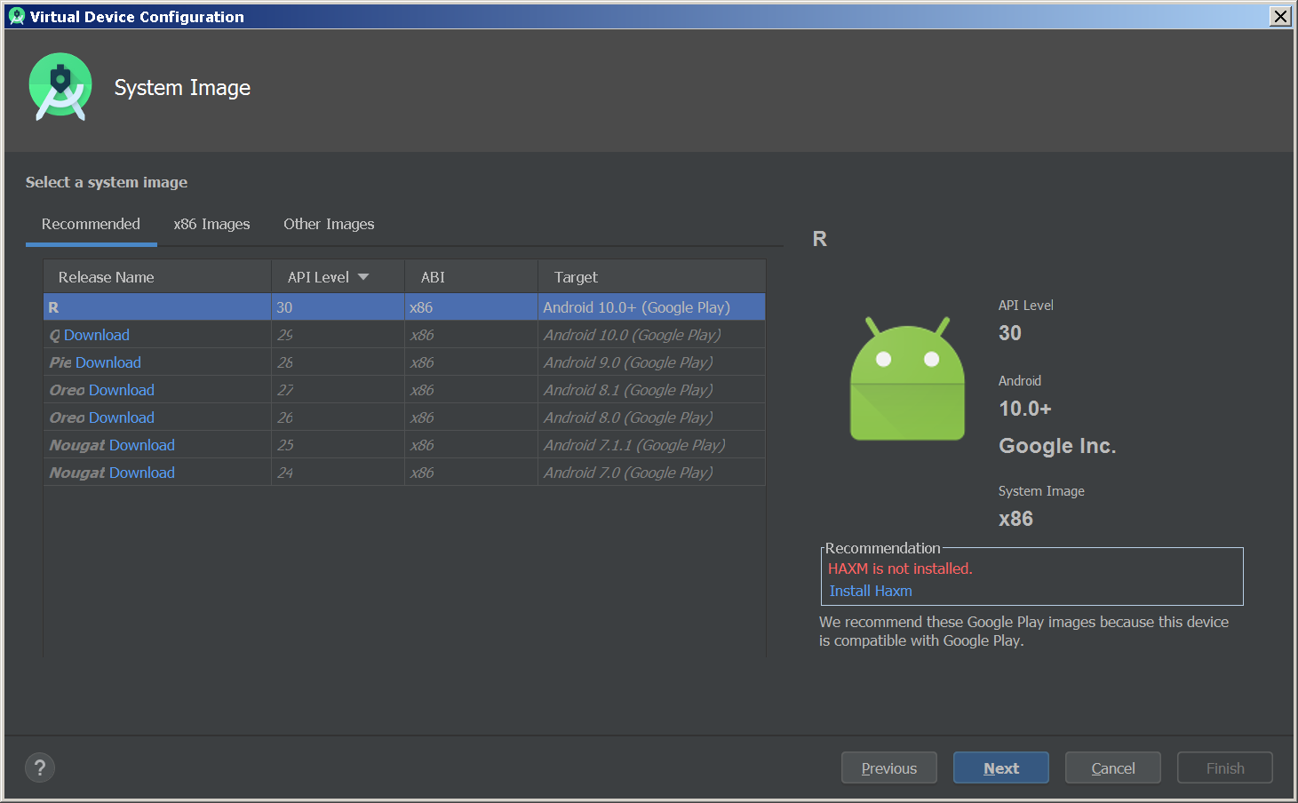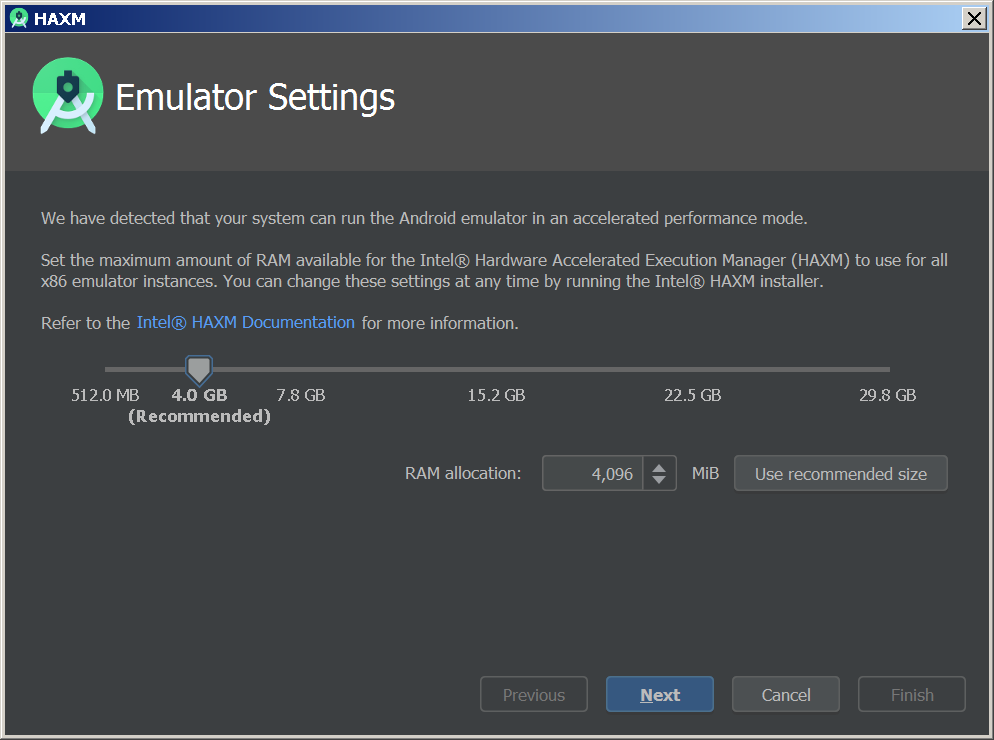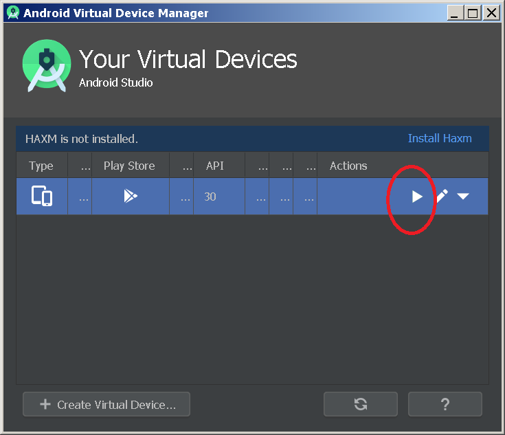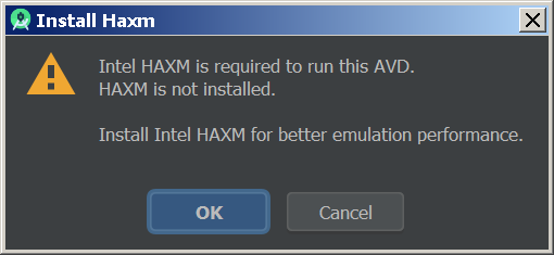 첫 실행에서 Haxm이 설치되지 않았을 경우 뜬다