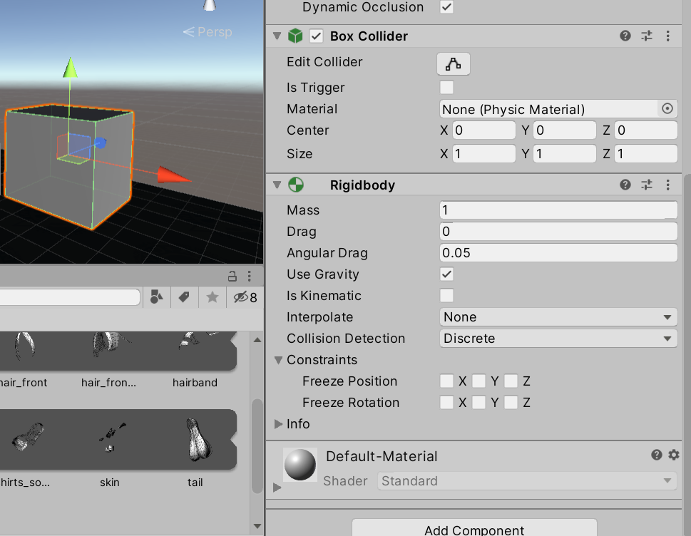 Rigidbody 추가 Rigidbody 추가하면 끝난다.
