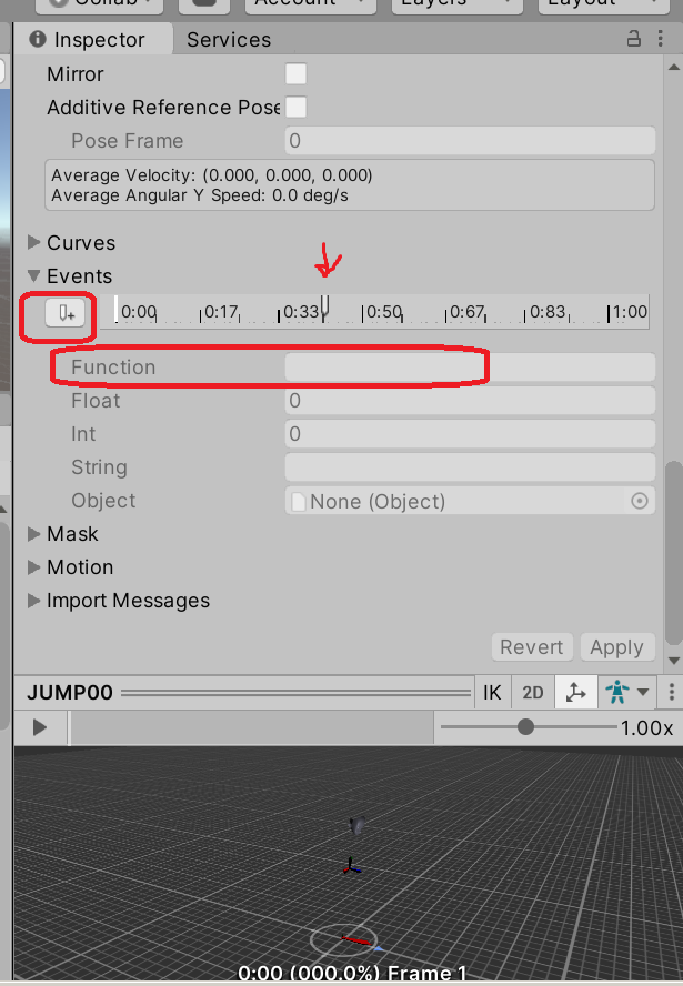 애니메이션 파일인 .fbx를 선택하고 Event항목에 필요한 함수명을 추가 할 수 있다.