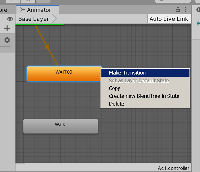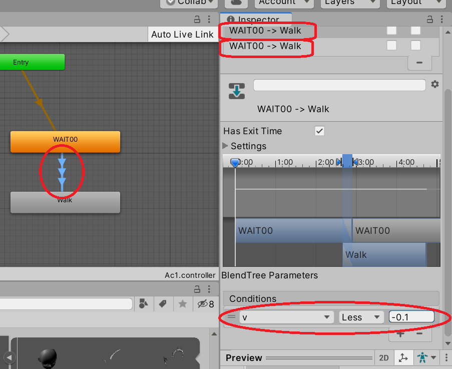 Walk에서 Wait방향으로 Transition추가