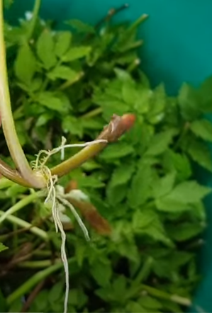 미나리 삽목으로 뿌리가 난 위치 옮겨 심기