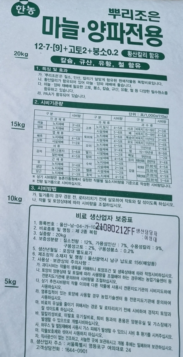원예 다목적('2022.02.19 - 비료 풍농 엔피코 썰파원예 마늘 양파')과 성분이 거의 같음