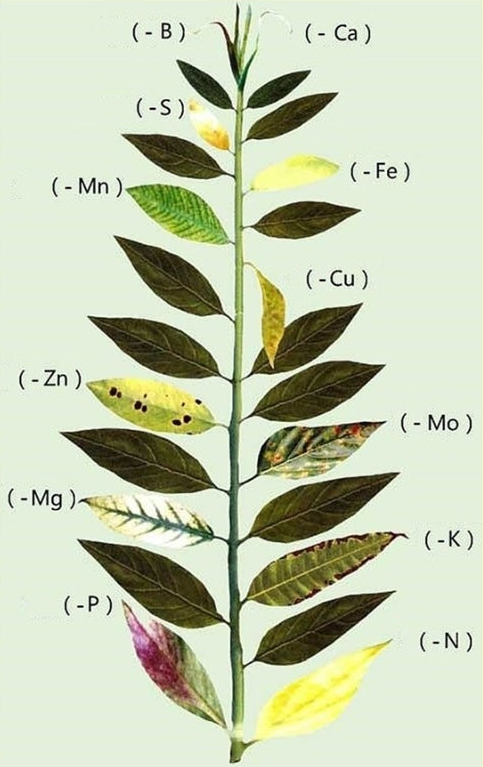잘 안 움직이는 성분은 늙은 잎에만 머물고, 잘 움직이는 성분은 어린잎을 찾아 재빨리 움직여간다. 이동성이 나쁜 움직이는 것을 싫어하는 성분은 어린잎에서 결핍증상이 나타나고, 이동성이 좋은 부지런한 성분은 늙은 잎(증상이 식물 전체 또는 늙은 잎)에 나타난다.