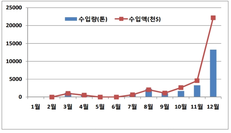 마늘 수입 월별 통마늘 2015