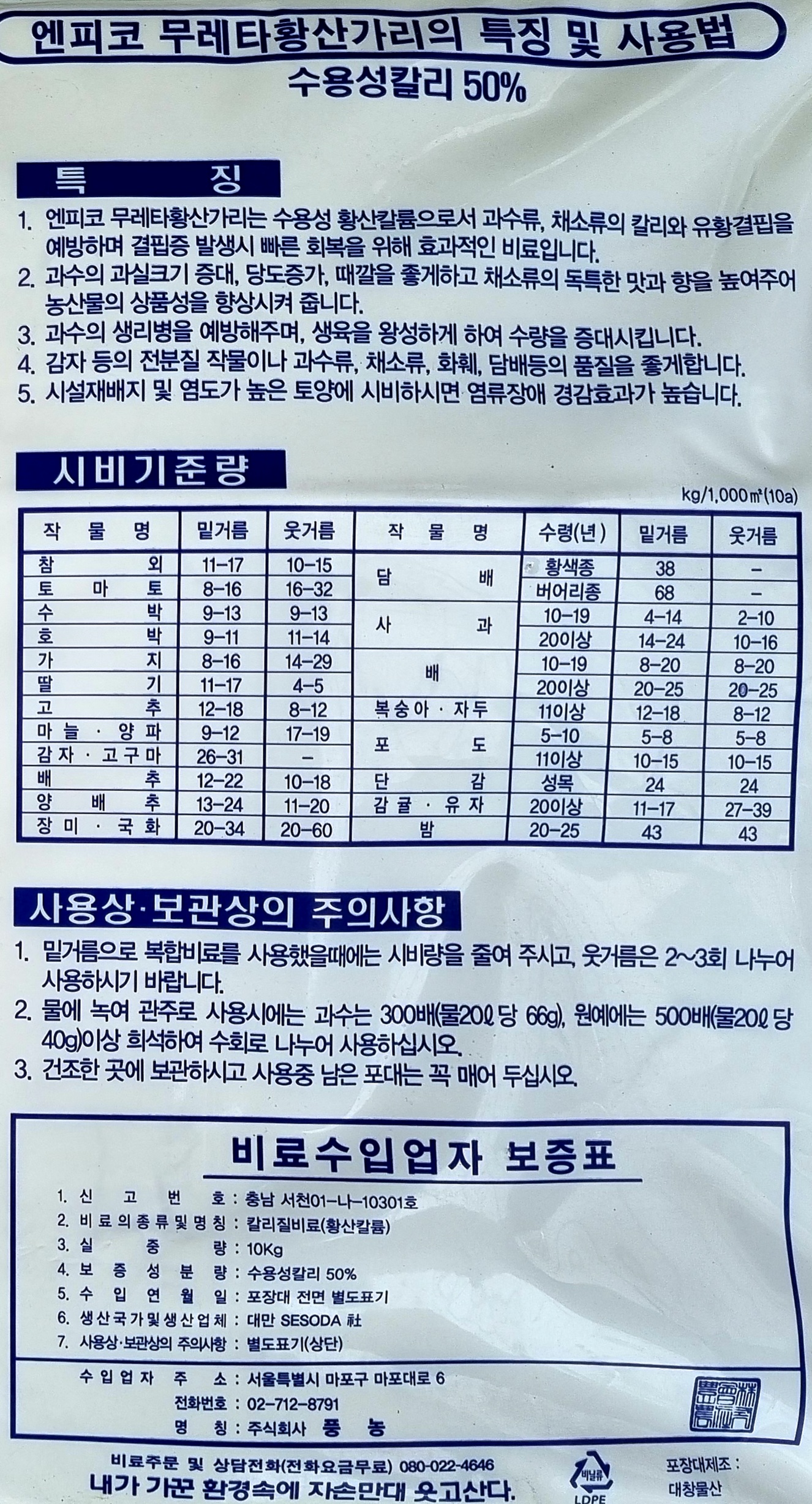 풍농 무레타황산가리