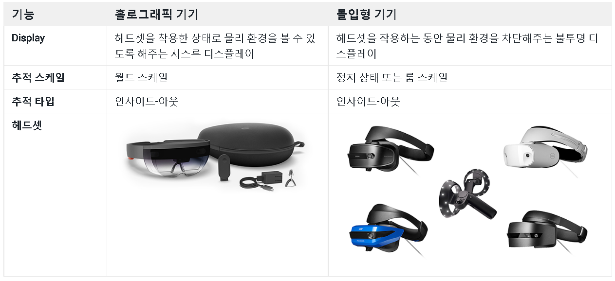홀로그래픽 및 몰입형 Windows Mixed Reality 기기의 주요 차이점