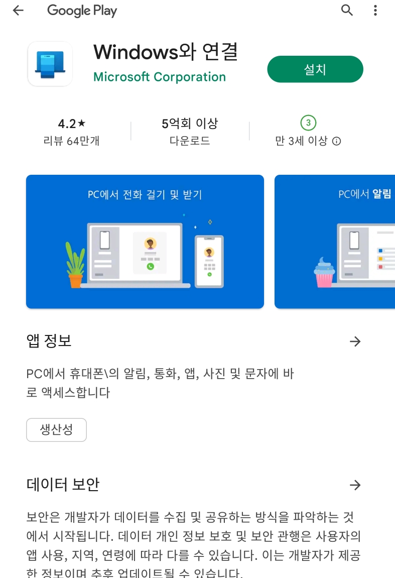 윈도우에서 통화기록 보기, 전화걸고 통화, 문자 확인, 문자 보내기, 사진 보기를 할 수 있다.