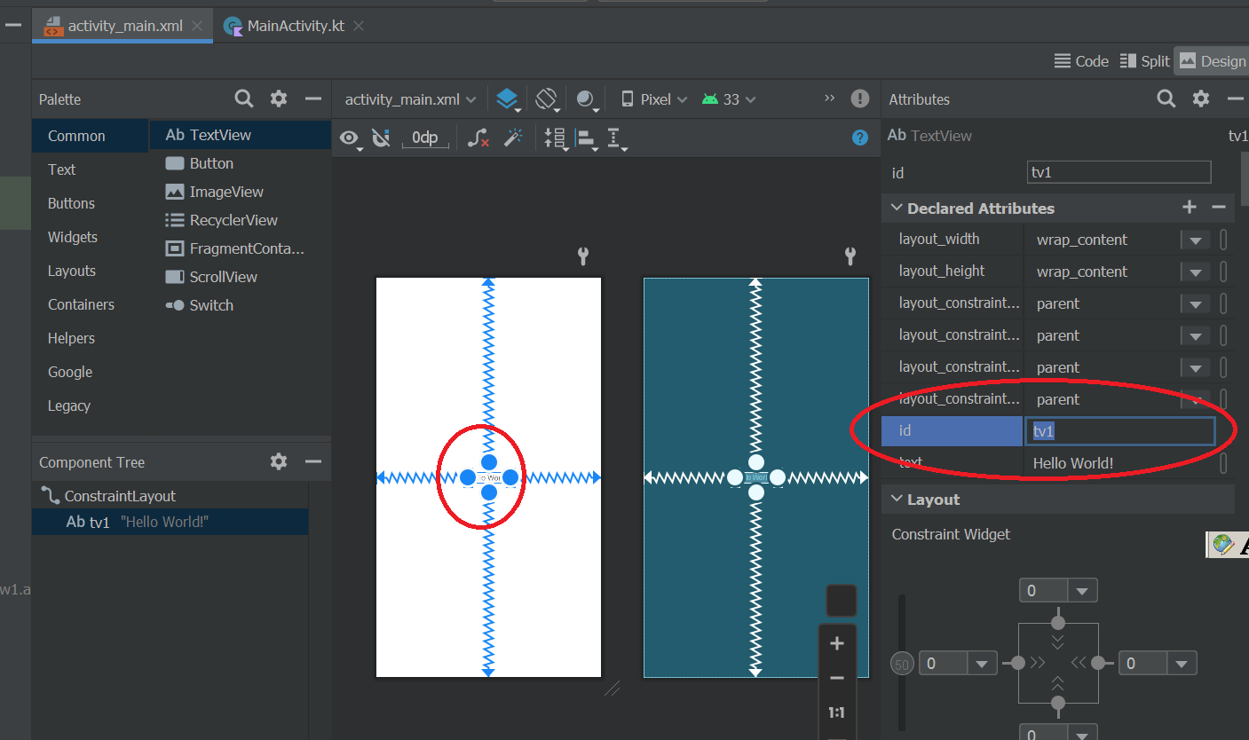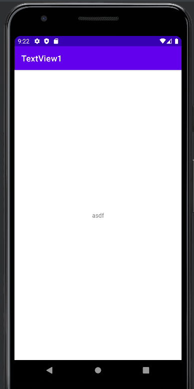class MainActivity : AppCompatActivity() { override fun onCreate(savedInstanceState: Bundle?) { super.onCreate(savedInstanceState) setContentView(R.layout.activity_main) findViewById<TextView>(R.id.tv1).text = "asdf" } }결과