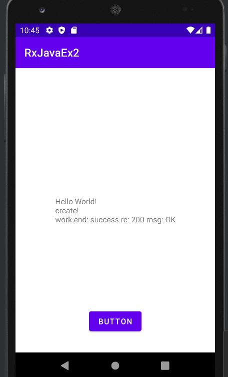 private Disposable data1Task; String urlString = "http://google.com"; //작업 환경 생성, RxJava 이해 필요. data1Task = Observable.fromCallable(()->{ URL url = new URL(urlString); HttpURLConnection urlcon = (HttpURLConnection) url.openConnection(); if(urlcon.getResponseCode() == urlcon.HTTP_OK) { //... TODO } else { } // 접속 끊음 urlcon.disconnect(); return "result xxx"; }) .subscribeOn(Schedulers.io()) //work .observeOn(AndroidSchedulers.mainThread()) //dsp .subscribe(rststr -> { //result data1Task.dispose(); qv("work end: " + rststr); }, throwable -> qv("ec: " + throwable.toString()));실행결과