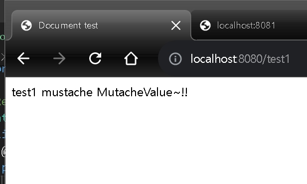 <!DOCTYPE html> <html lang="en"> <head> <meta charset="UTF-8"> <meta http-equiv="X-UA-Compatible" content="IE=edge"> <meta name="viewport" content="width=device-width, initial-scale=1.0"> <title>Document test</title> </head> <body> test1 mustache {{val1}} </body> </html>Controller파일생성