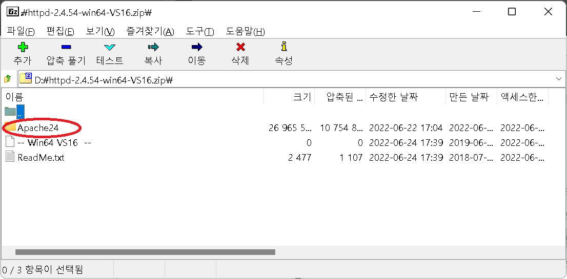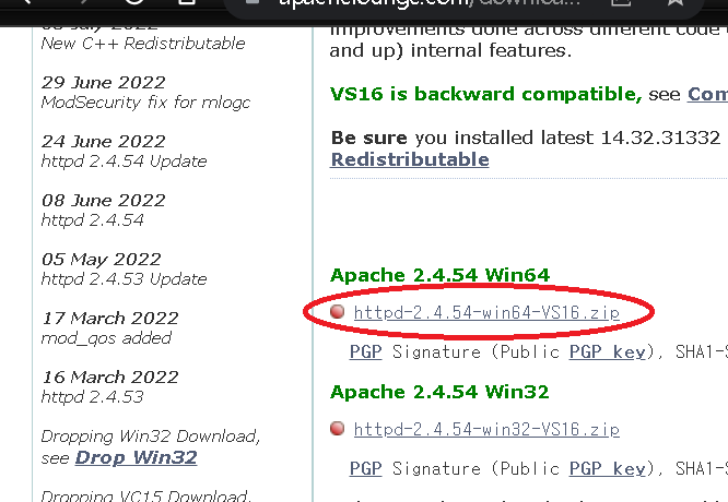사용한 파일 httpd-2.4.54-win64-VS16.zip