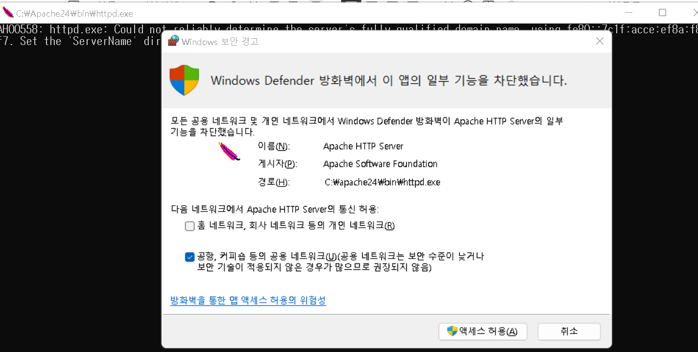 "C:\Apache24"에 압축파일을 넣었다.