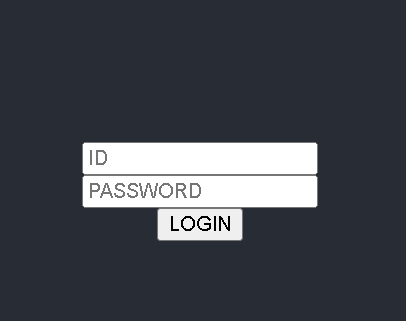 import React from 'react'; class Login1 extends React.Component { state = { id: '', password: '' } onChangeText = (evt:any) => { //alert("n:" + evt.target.name + ", v:" + evt.target.value + " id:" + this.state.id); this.setState({ //id: evt.target.value //alert("n:" + evt.target.name); [evt.target.name] : evt.target.value }); } onClickBtn = () => { alert("id:"+this.state.id+`, password:${this.state.password}`); } onPressKey = (evt:any) => { if (evt.key === 'Enter') { this.onClickBtn(); } } render() { const { id, password } = this.state; const { onChangeText, onPressKey, onClickBtn } = this; return ( <div className="App"> <header className="App-header"> <input type="text" name="id" placeholder="ID" value={this.state.id} onChange={onChangeText}/> <input type="password" name="password" placeholder="PASSWORD" value={password} onChange={onChangeText} onKeyPress={onPressKey}/> <button onClick={onClickBtn}>LOGIN</button> </header> </div> ); } } export default Login1;실행화면