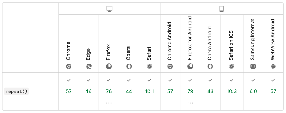 똑같은 값을 여러 번 반복해야 할때 repeat() 함수로 반복시킨 효과를 만든다.