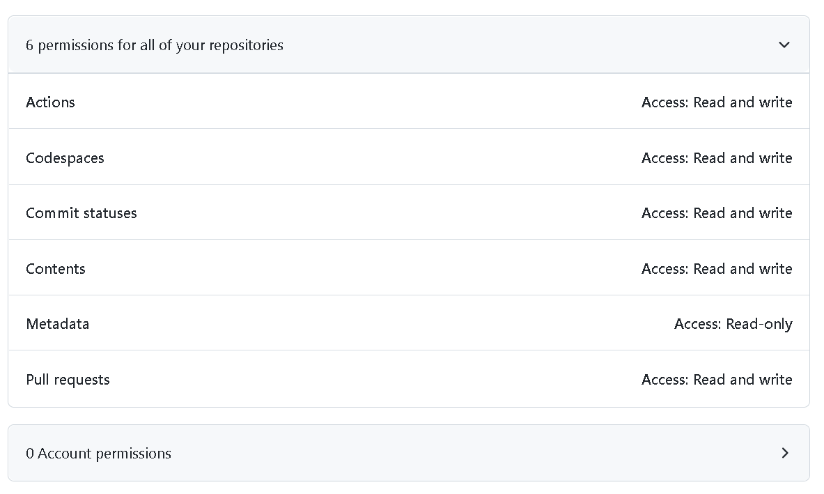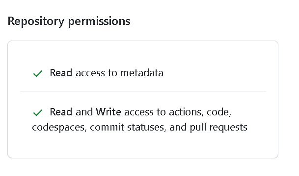 Read and Write access to actions, code, codespaces, commit statuses, and pull requests
