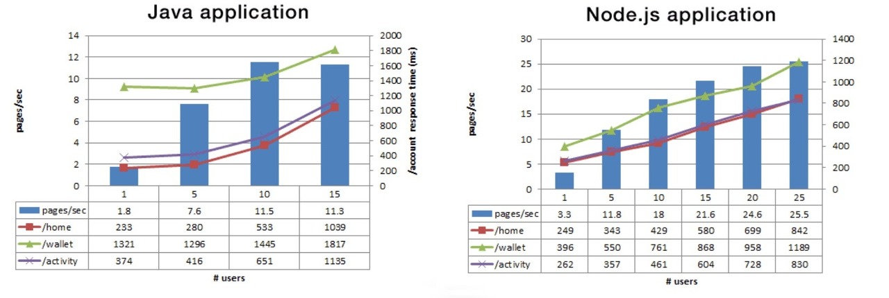 PayPal은 Java에서 JavaScript와 NodeJS로 변경하여 페이지 로드 및 응답 시간이 빨라지고 주어진 시간에 처리할 수 있는 요청 수가 두 배로 늘어났다.