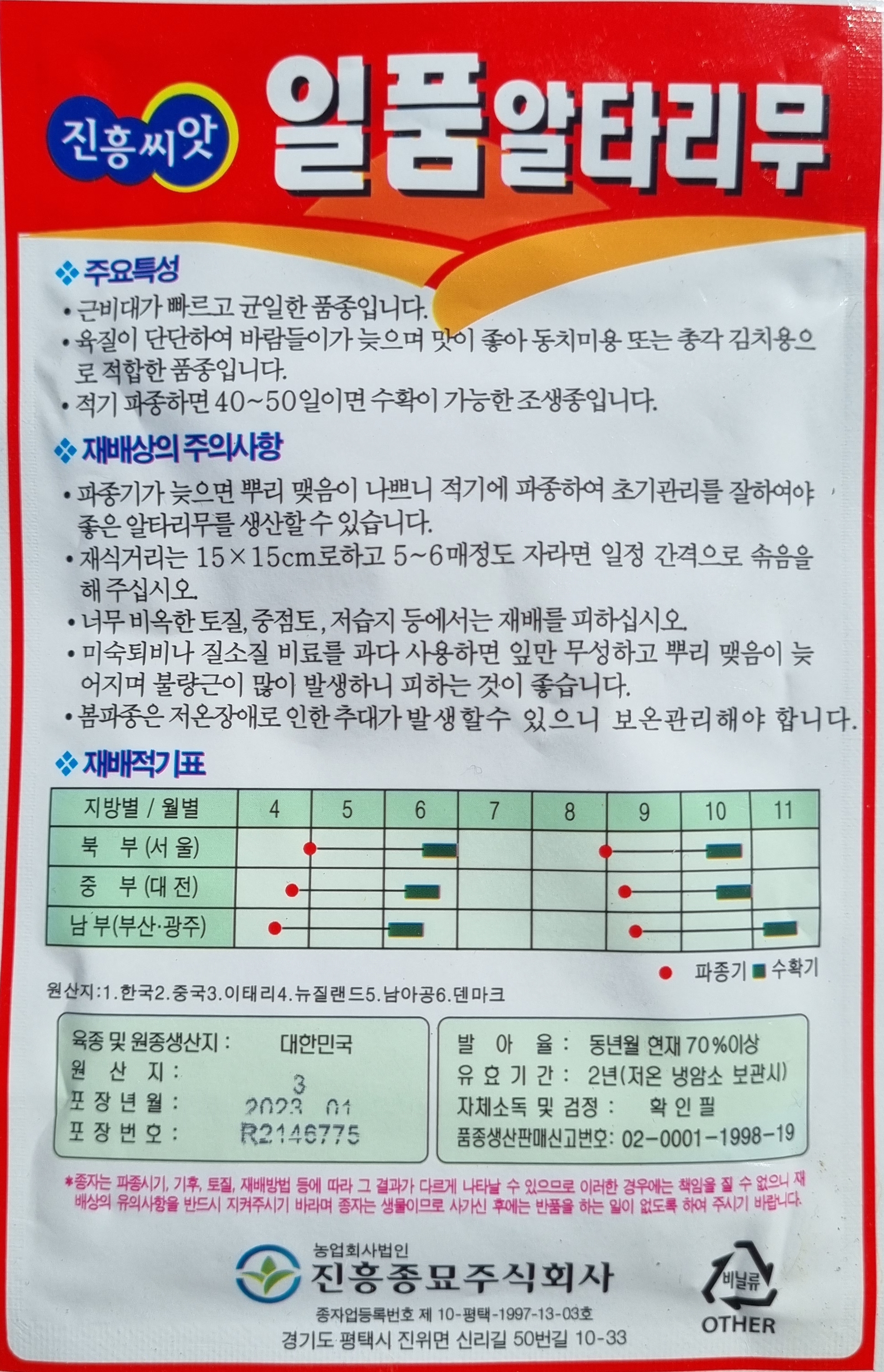 미래육성 웰빙로메인 (0) 2023.03.04 아시아종묘 상추청치마 (0) 2023.03.04 경신씨앗 적환20일무 (0) 2023.03.04 경신씨앗 흥심5촌당근 (0) 2023.03.04 미래육성 웰빙그린볼 (0) 2023.03.04 아시아종묘 모둠쌈채 (0) 2023.03.04 아세아종묘 상추적치마 (0) 2023.03.04 감자의 생장과 발육 (0) 2023.02.25