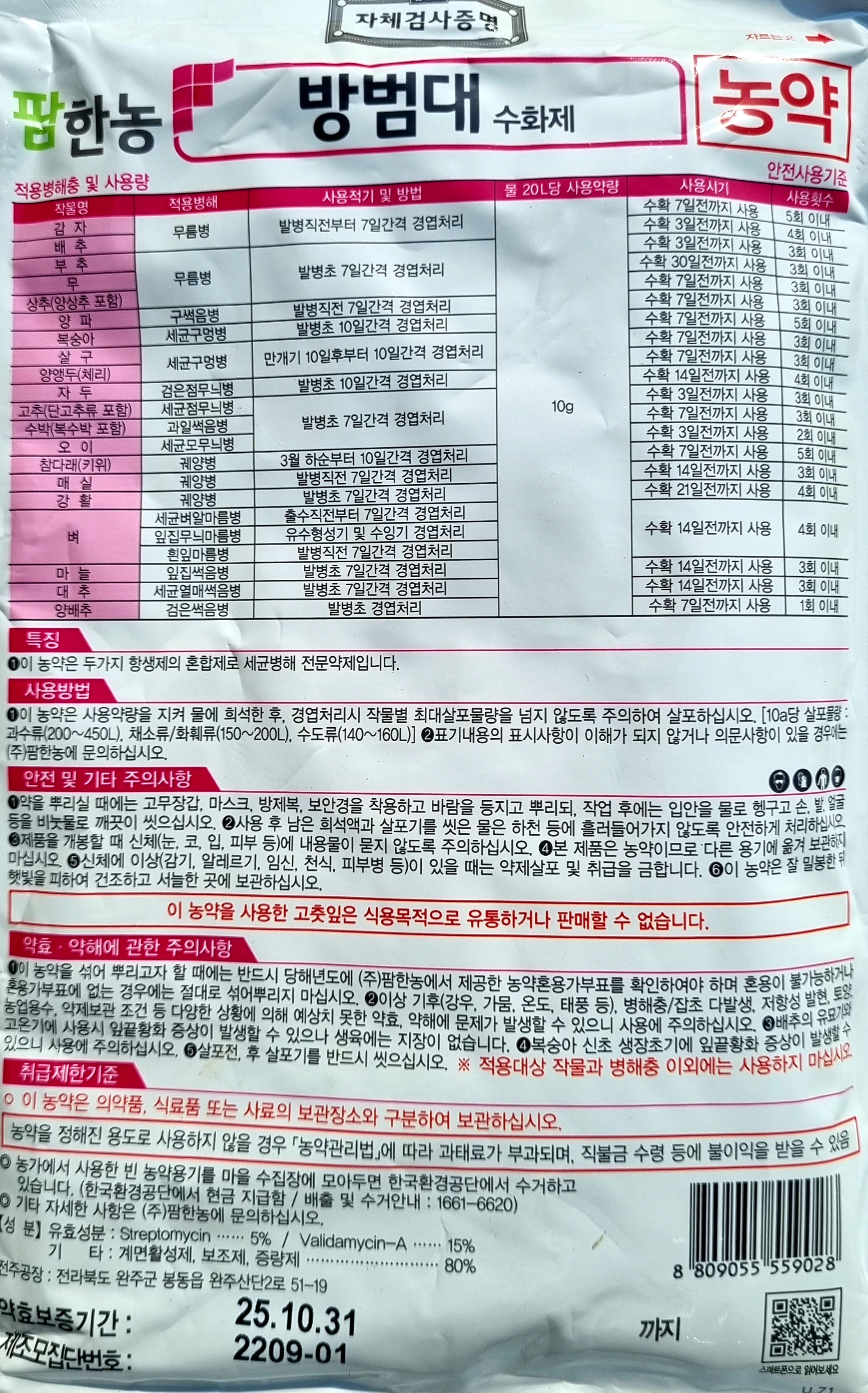 - 배추 무름병에 탁월한 세균성 병해 전문 항생제