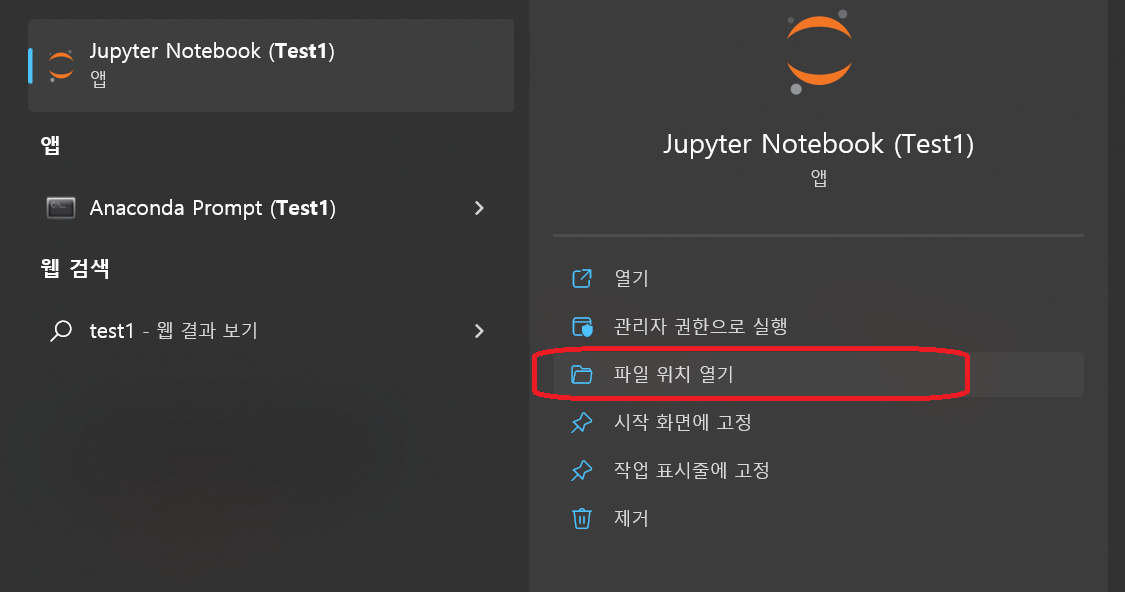 C:\Anaconda3\python.exe C:\Anaconda3\cwp.py C:\Anaconda3\envs\Test1 C:\Anaconda3\envs\Test1\python.exe C:\Anaconda3\envs\Test1\Scripts\jupyter-notebook-script.py "%USERPROFILE%/"변경 후