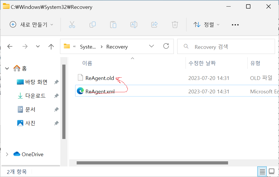 REAgent.xml 파일을 찾아 마우스 오른쪽 버튼으로 클릭하고 이름을 REAgent.old로 바꾼다.