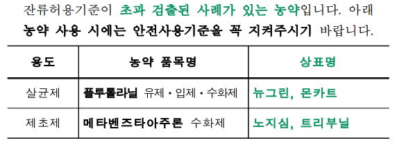 용도 : 제초제Herbicide잔류허용기준치 문제(마늘 2019년 발표)
