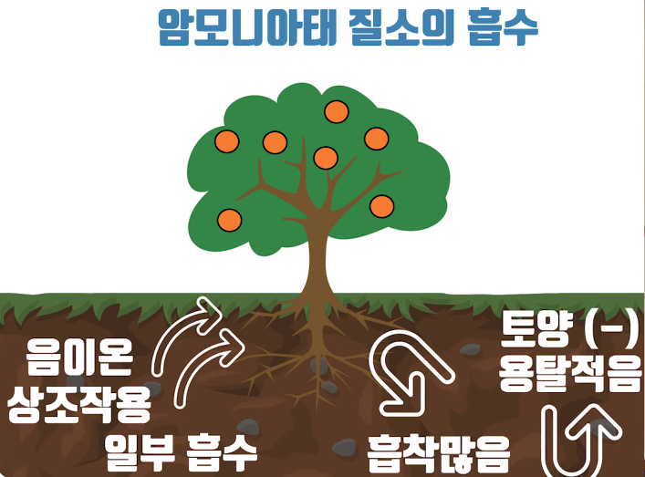 암모니아태질소는 음이온으로 양이온에 흡착된다.