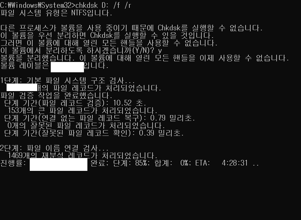 crc오류 이므로 chkdsk? 정답이 아니다.