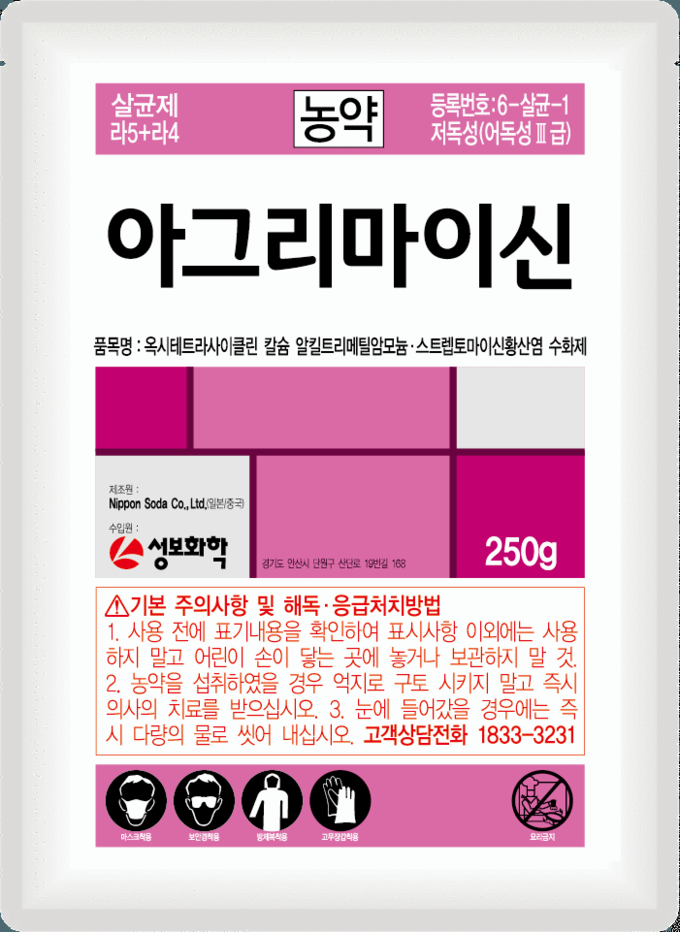남보 다자비 (0) 2024.11.16 팜한농 배차엔진품 (0) 2024.11.16 농협케미컬 세균탄 (0) 2024.11.16 SG한국삼공 닥터마이신 (0) 2024.11.16 성보화학 성보싸이클린 (0) 2024.11.16 신젠타코리아 비온 (0) 2024.11.16 아그리젠토 젠토마이신 (0) 2024.11.16 동방아그로 메가폰 (0) 2024.11.16