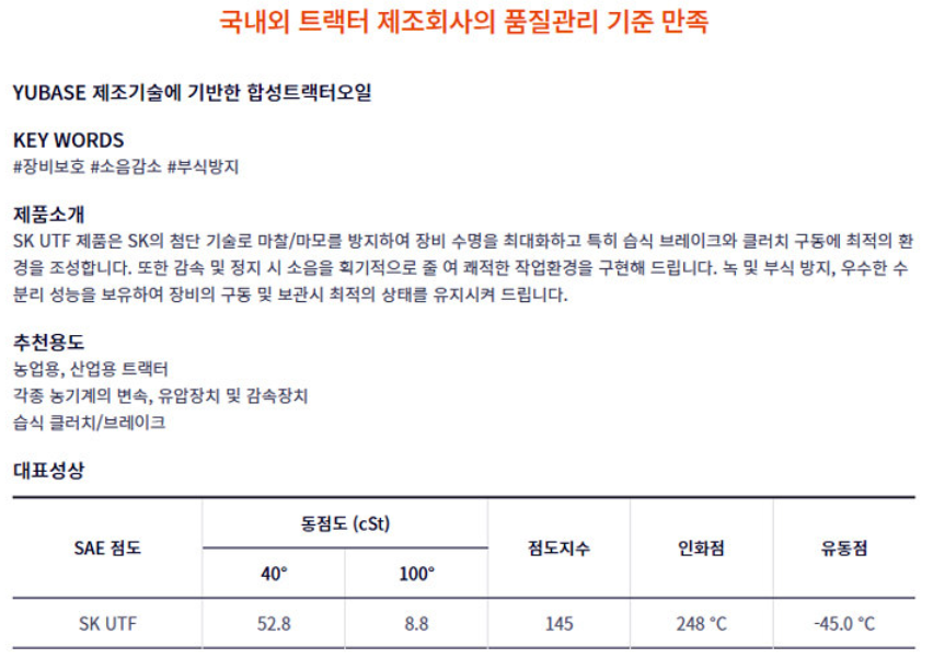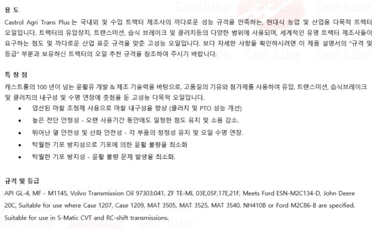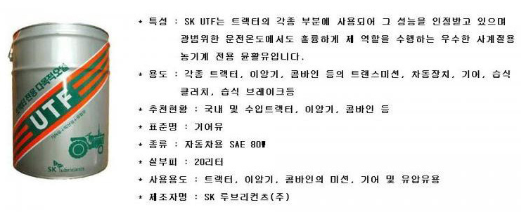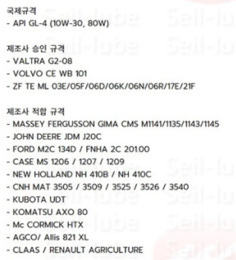 D5221 GL-4와 농기계용 주요차이: 습식 클러치 브레이크 등 고려.