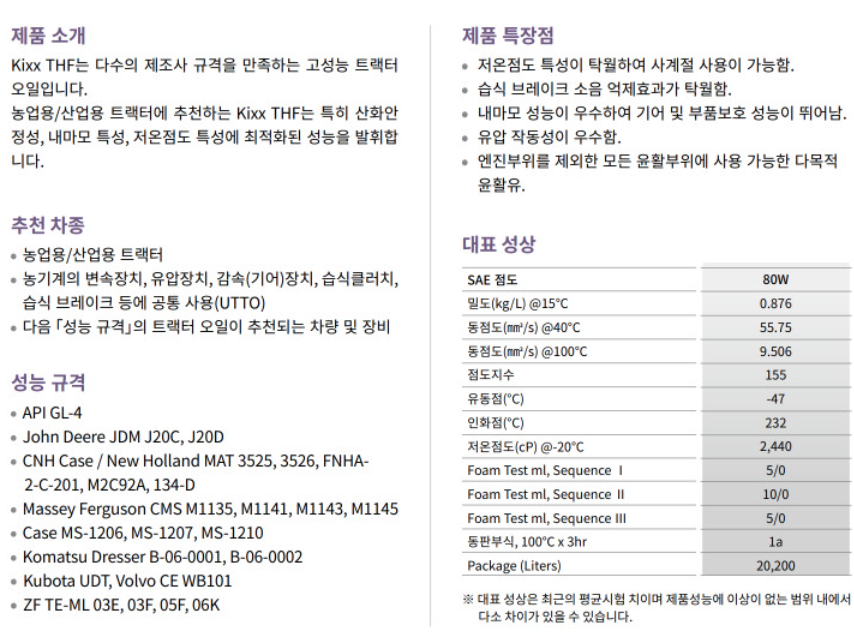 트랙터 미션 오일(UTF, THF, MPX, AgriTrans)