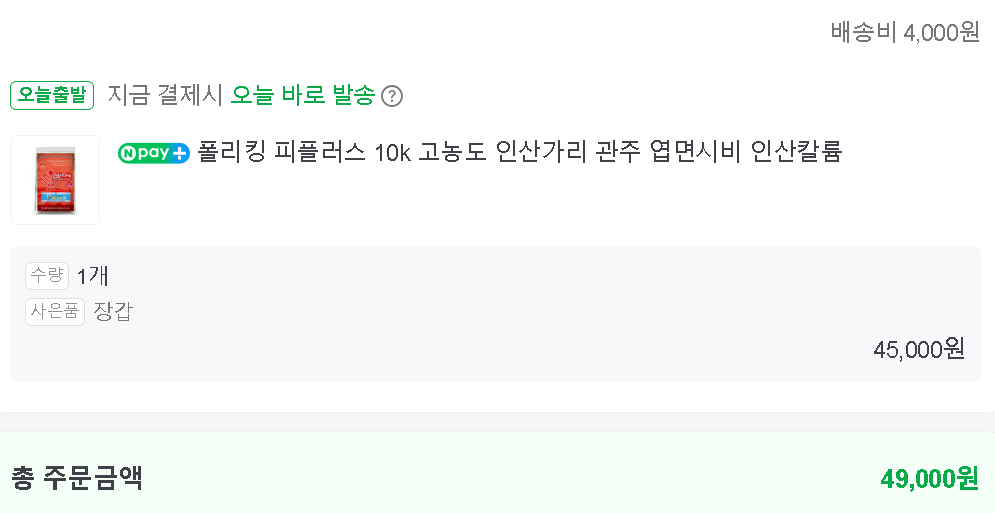 P 5.1kg; kg당원 8,823 = 45000/5.1