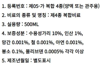 칼슘과 혼용시 최고의 효과를 나타냅니다. (본사 휴마칼 20㎖/물 1말)