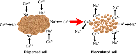D5b08요약 '다가이온의 응집(Flocculation) https://infos.tistory.com/7148': 다가 이온(Ca^2+, Mg^2+)이 점토 입자를 끌어당겨 뭉치게 하는 현상을 '응집(Flocculation)'이다.