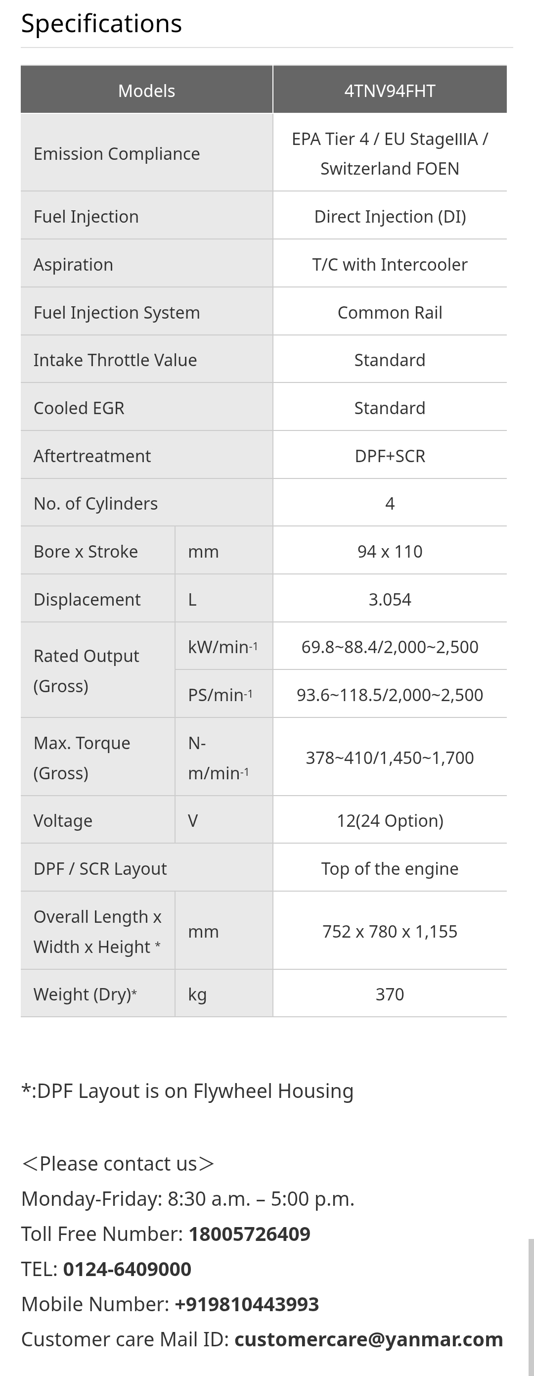 Engine Model 4TNV94FHT-NRNQK