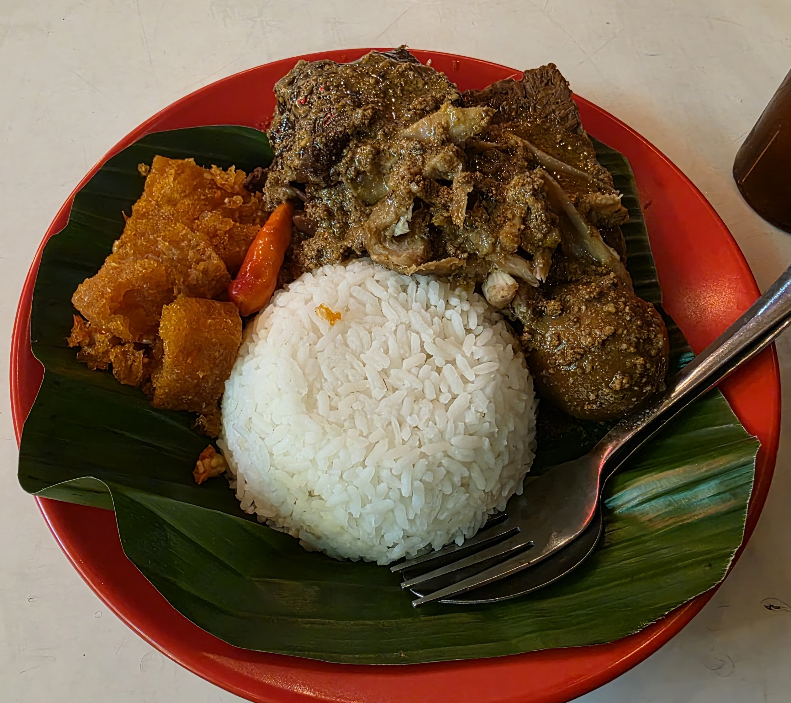 주재료: 아직 익지 않은 초록색의 어린 잭푸르트(Nangka Muda)를 사용한다. 익은 잭푸르트와 달리 과일 느낌보다는 채소나 고기와 같은 식감을 준다.